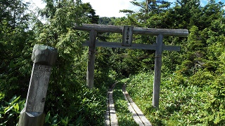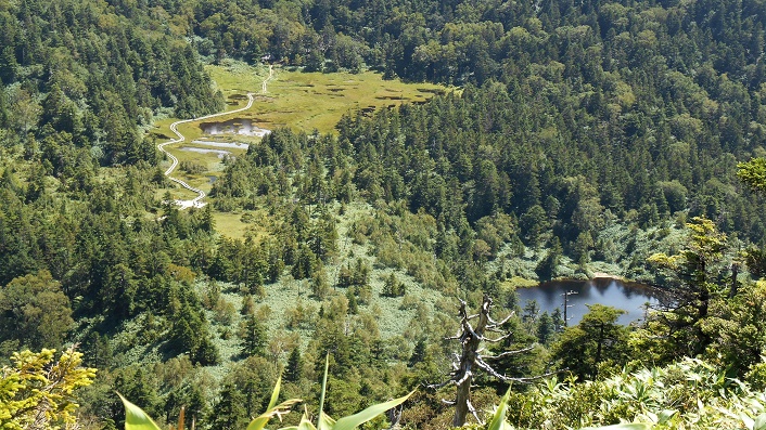 ![]() リンドウが咲いている。もう秋だな。 ここから一度降って、「裏志賀山」の方へ登り返す。二つほど池が見える。名前は無い様だ。 ![]() ![]() 12.25分頃「裏志賀山」への分岐に到着。腹が減ったので、この分岐で腰を下ろして昼食を取る。四十八池の方から人が登ってくる。昼食を済ませて、リュックを残して裏志賀山の方へ探索に出かける。去年は霧の中だったので入らなかったので、ここは初めてである。一番高いとこから「四十八池」が見下ろせた。木道が見える。向こうは「横手山」。 ![]() ![]() ![]() 「ウメバチソウ」が咲いていた。上から降りてきた人が珍して花が咲いていた、といっていたがこの花の事かな?。 その先で「ツリガネニンジン」の向こうに「大沼池」が見えてきた。湖水の色が素敵だ。 ![]() ![]() その先に「志賀山神社」があった。小さい祠である。祠の先は降りとなり、行き止まりで道が無いのでロープが張ってある。 ![]() しかし「大沼池」が良く見える地点まで登山路がある。入り込んで写真を撮る。大きな池である。左奥の高い山は「岩菅山」と思われる。13.05分。 ![]() ![]() リュックを拾って「四十八池」の方へ降ってゆく。ここも急坂である。13.45分に池まで降り立つ。大きな鳥居がある。「志賀山神社」と書いてある。先ほどの小さな祠の鳥居だった。 四十八池は、池ではなくて池塘の集まりである。 ![]() 左が「志賀山」。右が「裏志賀山」である。裏志賀山の方がちょっちだけ高い。 ![]() ![]() 木道で池を横切り、14.00時にあずま屋でコーヒータイム。 後は遊歩道を一直線に戻る。緩やかな下りで15.00時にリフト降り場に到着。向こうに笠ヶ岳が見える。 これから、明日の「四阿山」の日帰り登山に備えて、菅平のペンションまで移動である。笠ヶ岳の下の峰の茶屋前を通った。細い林道を、いろいろの温泉を通って、須坂市近くまで降りて、さらに菅平高原を目指して登って行く。途中で夕食を済ませ、18.00時にペンションに到着。素泊まりでネットで予約してある。明日は、5.00時には出発したい。 ■次回登山は、明日8/27群馬県「四阿山」へ■ |