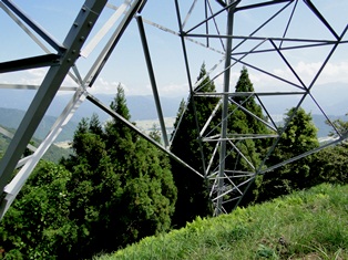 ![]() 離れた所に壊れかけの地蔵さんがある。保田時計台前の立て札に依れば「この地蔵は、村の油屋さんの店先に在った。300年ほど前、度々起こる水害を収めるため、村一番の力持ち陣内九郎兵衛が、90キロの地蔵を苦労して担ぎ上げた」と云うものらしい。 ![]() 今日の私の付き添いは、S女史とN女史である。 頂上は藪で食事をするところが無い。鉄塔まで下りる。 展望の良い最上の鉄塔「加賀幹線154」の下で昼食。 ![]() 「白山」と「別山」と「三ノ峰」とスキージャム勝山のゲレンデが見える「報恩寺山」 ![]() 「白山」の左側方面。 ![]() ![]() 報恩寺山の手前に「大師山」が見え、麓に勝山大仏殿と五重塔が見える。 ![]() その右に「荒島岳」が見える。 ![]() 南は「鷲ヶ岳」と、その上の「浄法寺山」が近い。 一時間滞在して、12.30分下山開始。13.00分に153鉄塔。13.30分に152鉄塔への分岐。14.00分に車に到着。 2011年09月10日(土)1回目 未踏 山渓の「福井県の山」を見て、石川県境に近い福井の山を登っていたら「保田経ヶ岳」と「飯降山」と「三ノ峰」が残った。今日は「保田経ヶ岳」に登りに行く。永平寺町と勝山市の境にある山である。大佛寺山に近い。 8.00時に加賀ゆめのゆに集合。今日は相棒とS女史の3人である。山中温泉を抜け、国道364号線で福井県に出る。九頭竜川を遡り、小舟渡橋を渡って、えちぜん鉄道・小舟渡駅と保田駅を通り保田の村の中に入る。地図を見ると林道が1本、経ヶ岳に向かって伸びている。案内書に寄ればそこから鉄塔巡視路を利用して登ると書いてある。のんきなもので良く調べもせず、やってきた。 ![]() 9.10分、林道の分岐に経ヶ岳の矢印を見付けて、入り込んだら、舗装が無くて途端に悪路になった。しばらく進んだら、道の片側が広くなった所があり車を置く。林道はまだ続いているが、道が荒れていて進めそうでない。今から考えるとこの林道の先を調べるべきだった・・・のだが。 ![]() 車を置いた傍に、偶然に「九頭竜幹線・61」の鉄塔巡視路の標識があった。案内本に巡視路を利用して登る、と書いてあった記憶があるので、この巡視路だと思い込んで入り込む。よく踏んである巡視路である。 ![]() 堰堤の下を通って少し登ったら「61鉄塔」に出て、その先に何の工事か判らぬが、大工事の現場を通り抜け、その先で一度降り、巡視路は段々と頂上とは反対側に登りだす。 ![]() おかしいな、おかしいなと登って行ったら、稜線上の「九頭竜幹線62鉄塔」に出た。10.40分。この稜線は永平寺町と勝山市を分ける稜線である。この稜線は経ヶ岳の頂上をも通っている。ここで抹茶休憩。頂上の反対側の稜線に大きな鉄塔が見える。 ![]() 稜線上に、頂上まで続く登山路が有る事を願って歩き出す。100mほど登ったら分岐に出た。左が「加賀幹線・152」で少し登っていく。右は道は平行に斜面に続いている。左の加賀幹線の巡視路に入る。気持ちの良い登山路を緩く登って行く。 ![]() 11.20分、「加賀幹線152鉄塔」に到着。送電線の先に経ヶ岳の頂上が見える。その途中にもう一つの鉄塔が見える。「153鉄塔」らしい。頂上直下の鉄塔は「154鉄塔」と思われる。案内書ではあの二つの鉄塔を経由することになっている。所が「153鉄塔」に行くには、一度谷底まで大降りしなければならない。だいぶ疲れてきているし、もったいない。 ![]() 頂上へは、先頃抹茶休憩した稜線が緩やかに繋がっている。分岐で左の加賀幹線の巡視路を進んできたが、右に進んだら尾根上を行けるのではないかと、また分岐まで戻る事にした。152鉄塔からは勝山の方が望める。 分岐より右に進んだが、登山路は予想に反して、尾根の上を進まず、段々と降ってしまった。12.40分杉林の中で昼食。 ![]() 今日は登頂をあきらめて、同じ道を戻る事にした。「九頭竜幹線62鉄塔」まで戻り、峠に荷物を置いて、その先の「151号線鉄塔」まで行ってみる。 この鉄塔下は見晴らしが良い。南の方、送電線の先に保田経ヶ岳の頂上が見える。頂上から少し下がった肩を、送電線が乗り越えている。あの鉄塔まで登り頂上に至るらしい。 東の方、勝山の「恐竜博物館」の、銀色のドームが見える。晴れていれば白山まで見えそうだ。 ![]() ![]() 14.05分、車に到着。登山口を確認の為、荒れた林道を先まで進んでみる。堰堤の上らしく、小さな広場があり、ここまで車を乗り入れる人が居るようだ。さらに進むと「加賀幹線152.153」の標識を見付けた。ここからは林道は無くなっている。やはりここから「153鉄塔」に登るのだ。「152鉄塔」はこちら側からで、もやはり登れるようだ。今度リベンジに来よう。 ![]() 村の中に「保田時計台」があると言うので見に行く。どうも村の人たちの手作りの時計台のようだ。立派なものである。 ![]() その横に「経ヶ岳(清ヶ岳)登山口」の標識があった。山の上に在る地蔵様の謂れが書いてある。経ヶ岳の登山地図も書いてある。朝この地図を見付けていれば、間違えることも無かったろうに・・・。 帰って案内本