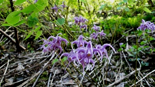 ![]() 頂上は西の方が切り開かれていて展望が良い。大きな方位盤があるが、載せてある情報は少ない。判り難い。 ![]() 日野山の右辺りに「白山」が見えると思って、目を凝らして眺める。天気が良すぎて霞んで良く見えない。白い白山が見えるような見え無いようなーー。 ![]() 河野海岸辺りが見える。敦賀湾辺りが見えないかと、派生している尾根を進んで写真を撮った。蝶採取の人が居た。話を聞くと「ホノケ山」と「杣山」辺りだけに、ギフ蝶の変種が居るらしい。全国的に有名な事らしい。この人は登山口までタクシーで乗り付けた人だ。 武生方面も良く望める。 ![]() ブナの木の左は「日野山」。右は、案内板に依れば「冠山」「金草岳」らしい。 ![]() ![]() あまり気持ちが良いので、1時間半ほども長居した。13.25分下山開始。峠まで20分位、さらに駐車場まで60分位。14.40分に駐車場に着いた。 ![]() 林道の花を撮る。ピンクの「イカリソウ」 ![]() 大きな「イチリンソウ」 |