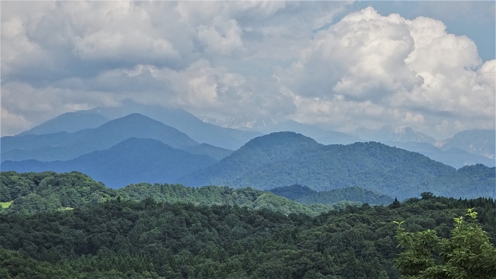 この頂上は見晴らしが良い。真ん中の大きな山は「大日岳」。右の手前三角は「大辻山」。大日と大辻の間に「立山」が見える。大日の左はもちろん「剣岳」。 ![]() 「剣岳」。良く見える。 ![]() 「立山」をアップに取ったら、左側に頂上の社務所が見えた。尖がっている先に奥ノ院があるのだろう。低い所が一ノ越で、右が浄土山。奥のピークが竜王岳。赤とんぼが写っている。 ![]() 海の方に切り開きがあり、富山市、富山湾、能登半島。 ![]() ![]() 南に尖がった「鍬崎山」。大品山、瀬戸蔵山も見える。ゴンドラで登ったスキー場も見える。手前右の丸い山は「来拝山」。 ![]() 頂上にある「展望図」。実に良くかけている。山の形はそのままで、判りやすい。この辺りも大分登った山が増えてきた。 ![]() 頂上の先に「塔倉山の東峰」がある。ここより少し低い。往復してきたが、あまり展望もない。標識類も何もなかった。 記念撮影をして、11.15分頃下山開始。11.40分に林道の車までたどり着く。登り50分の山だが、なかなか展望の良い山であった。 このあと、昼食は「吉峰山」と云う事で、吉峰山に向かった。 続きは下の稿「吉峰山」に続く 2012年09月15日(土)2回 「吉峰山」最高地点あずま屋-タワー ![]() 11.40分に「塔倉山」より降りて、近くの「吉峰山」に移動する。相棒K君が一人で登った時、最高地点の展望台へ寄れなかったので、私が案内する事にした。私は展望台には登っているが。アーバンタワーから往復した。今度は案内本の通り、外側駐車場から直接展望台に登る事にした。12.15分、駐車場着。 ![]() 駐車場から少し先で、用水沿いに左に入る、と本に書いてある。所が用水が無い。温泉源泉まで来て、?と戻る。用水は駐車場のふちに在った。水の無いセメントの用水で、用水に沿って歩いたら、本の通り溜池に出た。12.25分。 ![]() 所が、用水から尾根に登る筈だが、登り道が無い。直進する道が続いていたので、ぶらぶらと、?と思いながら歩いていたら、下に林道が現われて合流してしまった。完全に道を間違えてる事を確信し、右の藪を漕いで尾根に登る事に決定。 ![]() 13.10分、予想通り案外簡単に、尾根の上の遊歩道に登り着いた。13.20分、野鳥観測の小屋を通る。 ![]() 13.35分、展望台到着。ここが吉峰山の最高地点である。相棒を最高地点に案内するという約束は、これで果たした。 ![]() 展望台で昼食。富山平野が見える。能登半島が見える。尖山も見える。 ![]() 降りは、前回と同じ。アーバンタワーに出て、林業普及センターに降りた。芝生広場のあずま屋で、K宗匠に冷たい抹茶を入れて戴く。 15.15分に、駐車場に到着。 2012年06月16日(土)1回 タワー-「吉峰山」初登山最高地点 S女史と福井の方の山を歩く予定だったが、九州四国方面は大雨予報。石川県も降水確率100%。少しでも確率の低い富山の山に変更。少々降っても歩けそうな「尖山」か「吉峰山」にした。北陸高速を立山インターで降り山に向かう。10日程前に登った大辻山の近くだ。尖山は展望の山と書いてあるが、今日は展望が無いので「吉峰山」を歩く事にした。 以前、立山登山の帰りにこの道で日帰り温泉の看板を見つけて「グリンパーク吉峰」の温泉に入って帰った事がある。場所の見当が付いていた。左手の段丘が近ずいてくると、左折する道がある。すんなりと到着。グリンパーク吉峰には、パークゴルフ場、バーベキュー広場、コテージ、オートキャンプ場、山野草園、樹木園、芝生広場などなど広い公園だった。この裏山が吉峰山で、縦横に森の中に遊歩道があり好きなように歩けるとの事なので、ろくに調べもせずやってきた。 ![]() 9.45分、真ん中あたりの駐車場に車を置く。今にも降り出しそうだが、降っていない。 ![]() ログハウスが事務所らしい。ガイドマップが無いかと入ってみる。 ![]() 案内書の通りに一番外側の遊歩道を歩く予定だったが、パークゴルフ場とバーベキュー広場の間を登って行ったら、コテージがあり、その後ろに遊歩道が登っていたので入り込む。 ![]() 「ギボシ」に花が咲きだした。 ![]() 「クルマバハグマ」 ![]() 「ササユリ」も咲いている。 ![]() 「ツツジ」 ![]() あずま屋のある林道に出た。アーバンタワー7分の標識がある。 ![]() 10.30分、アーバンタワーに出た。なかなか高い塔である。階段が続く木造の塔である。登る。 ![]() 周りの樹木より高くて展望が良い。目の先に「尖山」が見える。 ![]() その左の方に三角の山と丸い山が見える。よくよく考えていたら、この間登った「大辻山」に違いない。その向こうに大日岳が霞んでいる。とすると右手前の丸い山は「来拝山」に間違いないと思う。 ![]() 展望台がある筈の最高地点へ向かう。本当は展望台へ直接登る予定が、アーバンタワーに出てしまった。塔から降りたら三角点があった。
