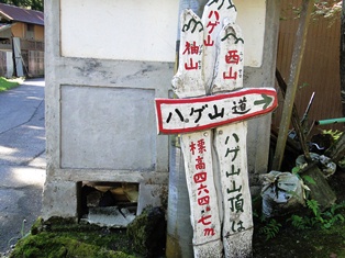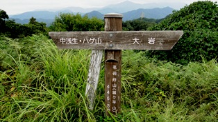 ![]() 前に作った山札が家に残っていたので、持ってきて提げた。 ![]() 帰りは尾根のベンチのある地点から、鉄塔巡視路で降りずに、尾根をまっすぐ進む道を降りて、林道に出る予定。13.30分。 ![]() 海の方に見える山は「ハゲ山」と「茗荷平山」かな? ![]() 13.45分に林道に出た。車を置いた林道がここまで登ってきている。ここにも「千石城山登山道」の標識がある。 すぐ横にこんな看板があった。 ![]() 丁度林道のカーブ付近で「剣岳」が見える場所だ。この林道は伊折集落まで降りられそうだ。 ![]() ![]() 林道歩きは、登りの登山路より3倍ほど距離が長い。展望は良いが、日影が少なくて今日はとても暑い。 早くも「ススキ」が穂を出している。秋?。 ![]() ![]() ![]() 「千石城山」の頂上が見える。平野も見える。 ![]() よく見ると、登った道の鉄塔がが見える。あそこを登ったのだ。登山口はまだまだ先で遠いなー。日陰の林道に座り込んで休憩。車はほとんど通らない。 ![]() ![]() 林道登山口に置いた車が見えてきた。14.50分。厚くてクタクタだ。よっぽど歩いたかと思ったのに、歩数計ではたったの「7500歩」か。 ![]() 上市川第二ダムの堰堤の上。ヘリコプターが上ったり下りたりしていたが、訓練らしいな。 ■次回登山は、8/16富山「塔倉山・吉峰山」へ■は上の項。 2014年10月04日(土)5回 「茗荷平山」「峠山」「ハゲ山」縦走 御嶽山噴火より1週間。今日は晴れそうだが、明日からは台風18号の影響で、午後あたりから大雨が降るかもしれない。熱は無いのだが、風邪らしく水洟が出る。何処かうんと楽な山は無いかと、富山の能楽仲間から頂いた、「富山の百山」を見ていた。今年の8月に発行されたばかりの、富山県山岳連盟編の本である。その中で「城ヶ平山」を見付けた。2年前に登っているが、相棒K君もS女史も、未だ登って居ないはずである。国土地理院地図には「城ヶ平山」となっているが、現地では「茗荷平山」となっているので、この項は茗荷平山とした。 ![]() 8時に小松市民病院駐車場で女史を乗せ、8.15分に徳光SAで相棒を乗せ、富山県の立山ICで降り、大岩山日石寺を目指す。日石寺の手前左側に、町の大きな駐車場がある。この先にも駐車場があるが、茶店専用の札があり、置きにくい。9.30分。 靴を履いて歩き出す。茶屋の前に、バスの回転場があり、広く駐車禁止になっている。その奥にトイレがあり、その横から登山路が始まっている。 ![]() ![]() ![]() この表示が頂上まで続く。 ツリフネソウ ミゾソバ ![]() ![]() 所々にベンチが置いてある。水場のあるベンチもある。昔住宅があり、今は畑ばかり残る所もある。緩やかに登って行く。道は良く手入れされている。 茗荷が所々にいっぱい生えている。だから茗荷平メョウガタイラ山と云うのだろう。誰か採る人が居るようで、荒らされているような感じ。それでも花の咲いている茗荷が採れて、持ち帰った。 ![]() ![]() 杉林を登り切り、第3ベンチ?で、相棒に抹茶を点てて貰って、抹茶休憩。10.35分。初めて遇った登山者が、追い越して行った。 ![]() 11.10分に頂上到着。まず剣岳を探すが、今日は雲の中。二人が着いた時は、頭がちょっと見えたという。先着一人。 ![]() この頂上は、細長く平らで、見晴らしが良い。 ![]() その一番先に、3等の大岩三角点が在る。 ![]() 富山湾の向こうに能登半島が伸びている。 ![]() ![]() ![]() 時間が早いので、昼食を半分食べて、残りは「ハゲ山」で食べる事にして、11.40分出発。 一度降りて、尾根を、緩やかなコブを越えながら行く。このコースは初めて歩く。 ![]() ![]() ![]() ネジバナ 12.00時に中浅生への下山口を通過。 谷を隔てた向こうのハゲ山。 12.20分に「峠山」に登り着く。477mで、今日の最高地点。前回、ハゲ山に登った時、ここまで来た事がある。 ![]() ![]() ![]() 12.30分、峠山を降りると西種分岐。前回登ってきたコース。 12.45分、ハゲ山の頂上到着。 この「ハゲ山」も展望が良い。魚津の遊園地の、大観覧車が見えた。 ![]() ![]() ![]() ![]() 観覧車 茗荷平山頂上の標識が見えた 剣岳は顔を見せなかった。 ![]() ![]() ![]() 13.20分に下山開始。 14.00時に中浅生下山口まで戻り、秋の花の咲くみちを降りる。 14.15分に、舗装してある林道に出た。城ヶ平山登山道「正男新道」の標識がある。 ![]() ![]() その先に「花の家」の看板があった。去年発表されたアニメの、「おおかみこどもの雨と雪」の舞台になった場所のようだ。 この作品の名前は知っていたが、まだアニメは見ていない。厚かましくも、どうぞいらっしゃいと書いてあったので、訪れてみた。凄く大きな古民家だった。山崎正男の標札があったが、正男様は最近亡くなられて、お子様の正美様がいらっしゃって、一緒に記念撮影に入ってもらった。アニメフアンの聖地として、訪れる人達や、登山者に、休憩所として開放しているようだ。アニメを見ていなくて済みません、と云いながら、コーヒーをご馳走になってきた。 家へ帰ってから調べたら、「おおかもこどもの雨と