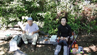![]() 記念撮影をして13.30分、下山開始。同じ道を降りて、14.10分に車まで到着。 上市町のアルプスの湯に入って帰る。 2012年09月15日(土)2回 目桑より「塔倉山」初登山往復 相棒に「尖山」でも登ろうか?と電話したら、この間登ってきたばかりと云った。それならば近くの「塔倉山」はどうか?と聞いたら、まだ登っていないから登ろうと云う事になった。彼は尖山の帰りに吉峰山も登ったが、最高点の展望台には、たどり着けなかったと残念そうに云った。ピークハンターの相棒は、最高地点はどうしても踏まなくてはならない。それならば塔倉山の帰りに「吉峰山」も歩こうと云う事になった。 相棒と二人だけの山歩きは久しぶり。徳光サービスエリアで待ち合わせ、8.00時。立山インターで降り、立山山麓に向かい、途中「沢新」の信号を左折、「白岩川ダム」に向かう。谷口という所で県道67号線になる。ダムは右手下に見える。ダム湖を通り過ぎて「目桑」と云う集落で、左に鋭角に曲がる林道を入る。舗装してある走りやすい林道だ。地理院地図には「塔倉山」の山名は載っているが、登山路が記入してない。林道はくねくねと曲がって、左の谷の突き当りの池を周って、ぐるりと大回りをして元の谷口まで戻っている。 ![]() 林道の右側から、登山路が始まっているはずだが、判るだろうか?。前方に山がふさがって見えてきた地点で、右の小さな谷の入口に、赤いテープを見付けて停まったら、登山口の石の標識を見付けた。道が少しカーブしていて広くなっているので、方向を変えて車を駐車。 ![]() ナビのおかげで一発でここまでたどり着いた。9.35分歩き出す。小さな谷沿いに登り、しばらく先に右側に小さな砂防ダムがある。「ママコナ」が咲いている。 ![]() しばらくで尾根の上みたいな感じになる。「キンミズヒキ」が咲いている。 ![]() 10.00時、最近の新しい、石の標識にでる。展望台と書いてある。 ![]() 登ってきた方角に、富山湾と能登半島が見える。 ![]() 10.15分に、主尾根に登り着く。右側からの登山路に合流する。「長倉」という所から登って来ているらしい。左に山頂を目指す。 ![]() 分岐より10分、10.25分頂上に到着。「ふるさとの山河うるわし、平成十年拓く」と云う石碑がある。三角点もある。 ![]()