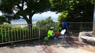 広い展望台だった。南の橋にあずま屋があり、西の丸い所の真中に、三角点マークの鉄蓋があった。三角点はこの中に納まっているのだろう。 ![]() 「乙坂山」の方面だが、判別がつかない。 ![]() 「日野山」と「村国山」 ![]() ![]() ![]() 動物園の方へ降りて、レッサーパンダを見て車に戻った。 ■次回登山は、10/2「下市山」■ |