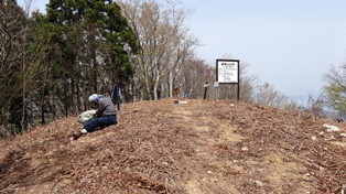 ![]() 「青葉山」が見えるが富士山の格好に見えない。頂上が大きく二つに分かれている。 ![]() 小浜の方も見える。 東の方には山がいっぱい。小浜・敦賀辺りの山だがまだ見分けがつかない。子ども連れの登山者も食事中。 ![]() 西の登ってきた尾根。この先で右の尾根に入る。三角点は祠の裏にある。 ![]() 地図を見ると海は北の方になる。 ![]() ![]() 今日の参加者は、相棒K君とS女史とN氏の4人。13.30分に下山開始。 ![]() 同じ道を戻り、新緑の林道を歩いて降りる。14.40分に停めてあった車に到着。 ![]() 車を少し戻して「野鹿ノ滝」を見学。15.00時。 あとはひたすら家路に急ぐ。山を歩いている時間よりも、車に乗っている時間の方が長い。それでも日が長くなったので明るいうちに到着した。 **次回登山は、5/6富山県「赤祖父山」へ** 2013年04月28日(日)2回 「多田ヶ岳」初登山 先日、飯盛山の帰りに登山口は確認して置いた。その「多田ヶ岳」に相棒と出かけた。多田ヶ岳は青葉山、飯盛山とともに、若狭三名山になっているらしい。いずれも小浜市にある。敦賀ICで降りて国道27号線をひた走り。小浜市街に入る前の南川の橋の、少し手前、和久里信号を左折して野代の「妙楽寺」を目指す。妙楽寺の駐車場に入らず、そのまま進むとすぐ林道になり鹿除けのゲートがある。ここまで2時間20分。 ![]() 開けて入り込み400mほど進むと「入山厳禁」の看板がある。9/15日より11/30日まで入山禁止。登山者は区長に許可を取る事。12/1日より9/14までも無断に入るべからず。情報では松茸が採れるらしい。我々二人は単なる登山者です。入山お許しください。この看板の前に車を置き林道を歩き出す。9.50分。 ![]() 案内板に従って進むと林道突き当りに小さい石橋があり「多田ヶ岳登山口・野代コース」の標識がある。10.00時。地理院地図には尾根を直進する登山路が記入されているが、今は全然使われていないようだ。 ![]() 荒れた沢沿いに登って行く。若狭の山は鹿が多くて下草が無く、どこでも登山路に見える。赤テープが頼り。時々小さな標識があるとホッとする。途中から右の斜面をジグザグに登り出す。 ![]() 尾根の上に出たが、登山路は尾根を進まない。相棒は尾根に登って行ったが呼び戻す。テープは斜面を這っている。とにかく複雑な道で方向が全然判らない。しかも急斜面に付いた道は滑り落ちそうな箇所が続く。 ![]() 11.50分、ようやく多田ヶ岳らしきピークが左手に見えてきた。ここも急斜面の山肌の道。途中に崩落個所があり高捲きする。下の谷をずーっと遠回りするので頂上は中々近くならない。 ![]() 多田の方向を示す標識に出た。今日初めての本式の標識だ。野代から登って来て多田ヶ岳を目指しているので、「多田」は、多田集落の方から登って来ている林道に出る分岐だろう。この分岐は地理院地図に載っている。初めて自分の居る場所が判明。この先急坂をジグザグと登って多田ヶ岳頂上到着。12.55分。3時間も掛かっている。 ここまで全然展望が無かったのに、狭い頂上だけは360度の展望がある。 ![]() 青葉山は「若狭富士」そのもの。 ![]() 眼の下に小浜市街。向うの山は「久須夜ヶ岳」 ![]() 東の方に山が連なっている。高島トレイルの山々と思われる。 ![]() ![]() 2等三角点が在る。