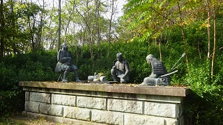![]() ここから地図を見ながら、直接「実盛塚」へ出る作業道が無いかと歩き出す。細い道はやめて置てた方が良い。すぐ行止りとなる。 ![]() 地図を読み違えて県道に降りた。篠原新町の方へ進むと八幡神社の前を通る。 ![]() さらに進むと「篠原古戦場・実盛塚」の標識が建つ参道入口がある。 ![]() 「実盛塚」は大きな松が植えられており、石垣で囲まれている。実盛の遺骸を埋めた所らしい。 ![]() あずま屋に入って遅い昼食。誰もいない。うまく作業道を歩けば、このあずま湯の後ろに出て来れる予定だった。 また田んぼ道を通って車に戻る。 ようやく「源平橋」に戻り着いた。柴山潟の上にまだ白山が見える。一万歩を越えたぞ。 ![]() ■次回登山は、5/13加賀「大峰」へ■ 2014年01月22日(水)1回 加賀市の「三角点」探し 2014年の元旦は病院で迎えた。暇で暇でしょうがない。退院したらまた山登りを始める心算だが、どうもこの調子ではいきなり高い所も無理らしい。そこで平地の三角点探しから始めようと、加賀山岳会低山徘徊部の太田さんより頂いた三角点情報誌で、携帯ナビの地図を眺めながらベットで色々と調べていた。退院し大寒も過ぎ、三角点札も造り待ち構えていたら、午後になったら小雪が止み陽が差してきた。2-3時間暇があるのですぐ近くの三角点を探しに出た。13.00時。 @▲「砂田」 4等三角点 3.46m小松の飛行場の前から片山津インターの方へ走ると、両側に工業団地が広がる。その団地の最後の工場を過ぎた所で、金網に沿って右に高速道路の方へ入る。突き当りが少し広いので車を置く。高速に並行して道路があるので車でも入り込めるが、先の様子が判らないので片山津インターの方へ歩き出す。200mほど歩いたら右に高速道路の下を通る道が分岐。構わず直進したら道路と左の下水溝の間に白いポールを見付けた。三角点は金属製だった。 続いて片山津インターの海側にある三角点を探しに行く。片山津インターの近くから海へ出る道が見付からない。とにかく海の方へ入り込んだら、なんとモーテルの裏口に直結。モーテルの駐車場を抜けて正面入口に飛び出した。ちょっと格好が悪い。仕方がないので片山津の方へ進み「汐見橋」詰めを海の方へ入る。すぐに高速の下を抜け、漁船などが置いてある広場に車を置く。 ![]() A▲「新保」 4等三角点 11.72m砂浜の境にある荒れた道を、片山津インターの方へぶらぶらと海を眺めながら歩く。陽が差しているが猛烈に寒い。耳がちぎれそうだ。海はきれいだが砂浜はプラスチック類が打ち上げられていて少し興ざめ。1キロ程インターの方へ戻るとインター近くの砂山が高くなっている。登ってみたら白いポールと三角点を見付けた。帰りは海岸線の向こうの尼御前岬を眺めながら車に戻る。 今日は足慣らしで見付けやすい三角点を探す。今度は尼御前岬だ。高速道路のパーキングに車を置いて入り込んだことがある。ここは謡曲「安宅」にかこつけて謡曲古跡として探しに来たのだ。三角点が在るなんて知らなかった。その昔陸奥を目指す義経主従が、安宅の関が見えるこの地に来たとき、一行の中の「尼御前」が、関の取り調べが厳しい事を聞き、足手まといになる事を恐れ、主君の無事を祈って、この岬から身を投げた、と云う話があるそうだ。 ![]() B「尼御前」 4等三角点 19.00m汐見橋を渡り篠原町の信号を右折して、橋立の方へ進むと高速道路の下を潜る。すぐ右折すると尼御前サービスエリア下りのレストランの裏へ出る。突き当りまで入り込むと公園の駐車場になる。車を置き、岬の方へ芝生の広場を降って行くと尼御前の像がある。その先20m位に三角点が在った。海が見えてその先が絶壁のようだ。あずま屋もある。 少し戻って「汐見橋」から柴山潟の方へ進むと「源平橋」に出る。橋を渡ると潟の反対側に「源平食堂」があり隣に「首洗池」がある。駐車場もトイレもある。ここに車を置く。ここも謡曲「実盛」の舞台であるので能楽師として何度も訪れている。斉藤実盛は篠原の戦いで白髪を染めて出陣。平家軍総崩れの中でただ一人踏みとどまり、木曽義仲の家来の若武者、手塚太郎光盛に首を落とされます。首実検で実盛ならば70歳を過ぎているので白髪の筈たが?と、この池で首を洗うとはたして白髪の実盛となる。木曽義仲は子供の頃実盛に一時かくまわれ、そのあと木曽の方へ逃がしてくれたので、実盛は命の恩人である。義仲は天を仰いで嘆きます。 ![]() ![]() 義仲、樋口次郎、手塚光盛の3人が首実検をしている像があります。その横に芭蕉の「むざんやな兜の下のきりぎりす」の句碑があります。その間の道を高みに登って行くと頂上に「兜の宮」があります。この山は「手塚山」と云うのだそうです。加賀市で一番低い山だそうです。公園になっていますがこの時期ちょっと荒れた感じです。手塚太郎光盛からできた地名のようです。 ![]() C▲「手塚山」 4等三角点 14.71m 「兜の宮」は、実盛の兜と実盛を祀った所と云うが、兜は現在