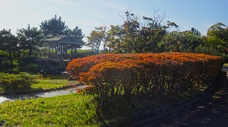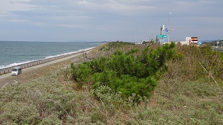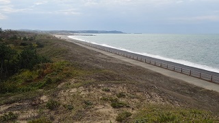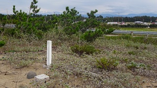 2025年10月30日(木)22回 末広緑地公園 5日前に米寿老人、加賀海岸を久しぶりに頑張って歩いたら、杖を頑張って突いて、腱鞘炎になったようで左腕が痛くて全然使えなくなった。2日程様子をみたが痛くて堪らないので整形外科に見てもらった。レントゲンを撮り骨は大丈夫、痛み止めであっという間に良くなり、車にも乗れるようになった。昨日、白山が初冠雪したらしい。買い物のついでにさっそく見に行く。 末広緑地公園へ。この先の展望台下まで車で行けるが、せめて少しでも歩かないと恥ずかしい。入口の駐車場に車を留める。14.30分。 日本庭園。 少し紅葉している。 ドウダンツツジ。 イチョウも黄色くなってきた。 芝生広場に出る。 芝生広場を通り抜けて、展望台下の駐車場に出る。 展望台が見える。適当に登って行く。 白山が見えてきた。 わずかに冠雪して居る様だ。まだ少しだな。 金沢測候所より肉眼で積雪が確認できると、初冠雪となるらしい。 白山から左側の山並み。 パノラマ。 展望台。屋根だけ。ベンチで日向ぼっこして、白山を眺める。15時。 帰りは白山を眺めながら、車道を歩いて戻る。 ピラカンサ? 草刈、有難うございます。 白山にトンボが写り込んだ。このまま早くもとの体調に戻りたい。 ■次回登山は、11/5「手塚山」へ■ 2025年10月25日(土)21回 ふれあい健康広場-片山津IC 今日は一人。ちょっと歩きたい。熊が怖いから海岸の道へ。小松のふれあい健康広場の三角点から。片山津インターの三角点の往復にした。 小松市日末町の海岸、「ふれあい健康広場」に車を置く。11.40分。 広場の入口に「電子基準点」がある。これは三角点である。 「電波三角点・点名は小松・標高は5m」である。地理院地図には▽マークがある。 モニュメントから出発。 隣にミニゴルフ場。出発点に行列。 海岸に降りて、自転車専用道路を歩く。歩道も可能なまっすぐな道。 テトラポットのある海岸。波は穏やか。 砂浜のある所もある。 釣人が居る。 高速道路の上の橋よりの駐車場。 テトラポットの向こうに投げ入れている釣り人 。 ここにも乗り入れみちがある様だ。 イソヒヨドリ らしい。 浜に降りる階段があった。釣人が並ぶ。 見ていたら大物を釣り上げた。写真を撮っている。 高速道路の片山津インターの標識が見えてきた。 標識の先で砂山をよじ登ると、三角点があった。 「4等三角点・点名は新保・標高は11m」 10年ほど前に訪れている。13.40分。 白山が見えた。 富士写ヶ岳。 三角点と白山。 尼御前の方面。 片山津インターの方面。そろそろ戻ろう。14時。雨がポツポツ。 自転車専用道路は、小松の方が通行禁止になっている。歩くのは通れる。 少し頑張り過ぎて、距離を伸ばし過ぎた。へたばり気味。帰りは遠かった。 16.20分。15.000歩。ようやくハートに到着。急に雨粒大きくなってきた。車に逃げ込む。セーフ。 ■次回登山は、10/25「末広緑地公園へ■。上の項です。 2025年06月29日(日)20回 「尼御前岬」と自転車歩道 去年12月に一人で尼御前岬から歩いた。S女史が急に時間が空いたから、尼御前岬を歩きたいというので案内した。 高速の尼御前のサービスエリアがある。高速道路の下を通り、海の方へ入ると、駐車場がある。トイレもある。10.50分。まず荷物を持たずに尼御前岬を一回り。 弘法大師像。この辺りへ来た事があるらしい。 尼御前岬は公園になっている。遊歩道を行く。 展望地点へ降りて見る。 橋立港の方面。 小松の安宅の方面。 ヒヨドリソウ ヒメジョオン ブタナ 「4等三角点・点名は尼御前・標高は19m」 今日はここから「篠原新」の三角点を目指す。 尼御前の像がある。 義経弁慶の一行がみちのくへの逃避行。この先にある「安宅の関所」の詮議が厳しい事を聞き、一行の中に居た尼御前、迷惑の掛かるのを恐れて、ここで入水自殺をしたとか。尼御前岬の名前の由来。 車に戻りリュックを担ぎて、駐車場出口より自転車専用道路を歩き出す。安宅の関まで12.4kmの標識もある。 初めしばらくは林の中。 すぐ抜けて自転車専用道路。道路の補修完了。海側の柵の中に小さな松の木が植えてある。松林を育てている。 ヒオウギスイセン ノカンゾウ ツユクサ 亜炭を掘っていた場所が近くにあるらしい。 段々と下に降りる自転車専用道路。 浸食の激しい海岸。自転車専用道路は波消しブロックが埋め尽くしている。熱中症を心配していたが、風があり涼しい。 前回去年の暮は。激しい波が降りかかった道。 途中の、高速道路下から入り込める広場に、車が数台あった。前回はこの先の自転車専用道路は通行止めだったが、今回は解除されていた。後600m位で三角点があるはずだ。右側は整備が完成らしい。 少し開けた砂原になった。タブレットに三角点を映し三角点の上まで砂丘を登ったが、どこにも三角点が見当たらない。三角点マークの6.6mに居るが三角点が無い。山側に柵があり木が生えていて、その先に高速道が走っている。付近の工事で三角点が埋った様だ。残念だが諦