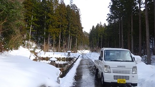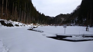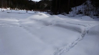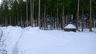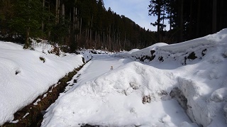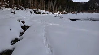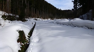 2012年02月25日(土)5回 駐車場より「砂山」一周 朝は雨が降っていたが昼頃止んだ。午後1時に「遊泉寺砂山」へ歩きに出かけた。帰ってからこの頃持ち歩いている、ソニーの携帯ナビの軌跡をを調べていたら、ホームページに載せていた地図の書き込み登山路が、全然間違えていたことに気付き愕然とした。一本谷を間違えていた。まことに情けない。まさかあの地図を見て遊歩道を歩かれた方は居ないと思うが・・・。訂正してまた載せておきます。今度は大体正確だと思います。コースはハート形になっていました。恋人と歩くと良いかも。 ここ2.3日突然に暖かくなって、雪がいっぺんに消えた。国道360の立ち寄り湯の「湧泉寺」の手前から県道55に入り、鑓水観音山の方へ走ると、鵜川町のはずれに「遊泉寺銅山跡」の標識→が出来た。去年はその先で除雪が無かったので歩いた。今年も行き止まりを覚悟していたら、なんと農道の雪が全部消えていて、突き当りの駐車場までなんなく入り込んだ。 ![]() ![]() カンジキだけ持って13.05分、雪の無い林道を歩きでしたら、分岐手前で急に残雪が増え、分岐でカンジキを履いた。分岐からは足跡が全然ない。 見た事のない動物の足跡がある。初めて見た。一つ一つにお尻の跡がある。何だろう?。(よくよく考えたらウサギの足跡が、段々溶けてこんな形になったようだ) ![]() 一年前の同じ頃に歩いた時、右に行こうか左に行こうか迷って、引き返した地点に出た。巻上げ装置跡である。 ![]() 今回もここで迷うかなと思っていたら、矢印の付いた「頂上まで200m」の標識が在った。去年は無かった。ここから尾根を左に進む。地図を見ていたらこの尾根は、小松市と能美市の境界線だ。展望台までに2.3の瘤がある。どれが頂上か判らない。 展望台からは小松の街並みが見える。 ![]() 展望台から降りて尾根を先に進むと「砂山」の標識がある。どうも若い頃の記憶と合致しない。右手に雑木の間から「遺水観音山」がみえる。よく観察したら頂上あずま屋が見えた。 ![]() ![]() 尾根を段々降りると分岐に出る。順路は左に谷を降りてゆく。右は「観音山(仏大寺町)方面」の標識がある。観音山が見える。一度歩いて見ようかな。 ![]() 左へ降りると林道に着く。前に池が在り「銅山街の水源地・桐の木谷(キンノキダン)の堤」の標識がある。ここまでくれば、あとは駐車場まで一直線の林道だ。 15.25分に駐車場到着。 駐車場の看板に、「現在地より遊歩道分岐まで0.8km。遊歩道一周1.5㎞、60分」と書いてある。誰ひとり歩いていない、足跡の無い遊歩道でした。 ▲次回登山は、2012/02/29「おくりび山」▲ 2011年02月08日(水)4回 駐車場より「砂山」途中敗退 ![]() 運動の為に歩いているので、なるべく暇があると飛び出すことにしている。今日は一人なので危ない所は行きたくない。寺井の和田山でもと思ったが、雨が降っていないので、「砂山」に出掛けた。表通りから砂山の方へ入ったら、すぐ除雪がしてなくて行き止まった。ここに車を置く。除雪の山を越えて、足跡のない道を歩き出す。10.30分。50m程歩いて、あんまりゴボルのでカンジキを着けていたら、男が一人スノーシュウを着けて追い越して行った。 ![]() 10.50分、駐車場のトイレに着いたら、冬季の為閉鎖中の札が下がっていた。追い越して行った男は、山を歩くのかと思ったら、「コマツ」の記念碑を一回りして帰って行った。やっぱりこの山は、一人で歩くのが似つく山なのだな。 ![]() 林道を歩き出したら、横の側溝があふれて、林道が川になり、雪が解けている場所がある。カンジキを外すと、また着けるのが邪魔くさいので、そのまま進む。11.20分に分岐に到着。 ![]() 分岐からは雪が多くて、木が多数倒れていて歩きにくい。林道の跡もはっきりとしない。 ![]() ようやく、林道らしき所が終わり、左にカーブして登って行く。細い場所がある。 12.30分、頂上と思われる地点に着いたが、どうも違うようだ。ここからは右にも左にも行ける。たぶん右に行くのだろうと思ったが、標識も無いし、疲れたし、どうしょうかと考えていたら、雷が鳴った。今日は一人なので心細いので、これで戻る事にした。 ![]() ![]() ![]() 雪は深いが、膨らんだ木の芽があった。 前回見付けられなかった「レンガ造りの巨大煙突・高さ20m直径2.5m」の標識があったので、山すそを探したら、上の方にそびえていた。以前は蔦に覆われ、緑の煙突だったが、今は茶色の煙突である。 2009年09月16日(水)3回 駐車場より「砂山」一周 ![]() お天気が良い。午前中が空いたので、ほんとに近くの 「砂山」にS女史を案内する。ほとんど誰も知らない山だろう。我々年寄り向きの山だ。9.00に登り口に着く。 ![]() 「ベニバナボロギク」が咲いている。私の知らない花は彼女が全部ネットで調べてくれる。ところでレンガ積みの煙突があったはずだが見当たらない。どうなったのかな。 ![]() 頂上は雑木林の中の高み。小松市の方が切り払われていて、少し展望がある。 ![]() これ
