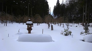 2025年02月10日(火)24回 遊泉寺砂山 寒波も過ぎたようだ。午後になってから「砂山」へ雪の状態を偵察。この間憩いの森で梅が咲いていた。砂山の「枝垂れ梅」はどうかな? 遊泉寺銅山ものがたりパークの「里山みらい館」の前に車を置く。ここまで除雪してあった。13.45分。 里山みらい館は無人の様。隣のお手洗棟も雪が積み上り使用不能。 駐車場の先も除雪してある。 車道から遊歩道には入れない。 車が停まっていた。みらい館の人が、道路沿いの水路の整備をされていた。この先通ませんと云われる。 梅林園に到着。雪に覆われている。 枝垂れ梅だけの梅園。花は一輪も咲いていない。 この先除雪なし。人の足跡も無い。 動物の足跡がある。 入り込んでみる。足跡が横切っている。カモシカらしい。 カモシカの足跡を辿って櫻の広場まで来た。 櫻の広場。足跡無し。入る気もしない。 今日はここまでで引き返そう。14.10分。 梅林まで戻った。ここまで除雪してあり方向転換できる。 梅林は花の咲く気配もない。 日本庭園。 山裾の遊歩道にカモシカの足跡。 まだ整備中。ご苦労様。 遊歩道も雪が深そう。 立ち話、カモシカの足跡が多いねと云ったら、普通の鹿も居るよとおっしゃる。 戻った。14.30分。遊泉寺砂山はまだ、誰も歩いていない感じだった。 ■次回登山は、2/12「虚空蔵山」へ■ 2025年04月16日(水)23回 駐車場より時計反対周り「砂山」一周 S女史と「里山みらい館」前の駐車場で待ち合わせ。所が忘れ物をしたので遅れるとの事。私は先に出発する事になった。 まず初めに、通って来た時に見て気になっていた、入口に新しく出来ていて、細長い木が植えてあるゾーンまで引き返す。桜?梅?桃? 案内標識無し。 入口駐車場の手前にある。初めて見た。 ここは元「遊泉寺銅山」。明治の頃栄え、大正に入って閉山した。銅山の鉄工所が現在の「ブルトーザーのコマツ」になっている。立役者の竹内明太郎氏の銅像。満開の桜の中に立っている。 「遊泉寺銅山ものがたりパーク」として整備中。コマツが関わっている。 車を留めた「里山みらい館」の前の駐車場まで戻ってきて出発。9.50分。 銅山遺構。この辺りはシャガが植えてある。まだ咲いていない。 池が造ってある。向こうにスイセン。 「枝垂れ梅の梅園」がある。咲いている。 しかし花はあまり目立たない。 梅園の先に「桜の広場」を造成中。入口の小さなシダレザクラ。 場所は広いがまだ桜の木は少ない。広場にある桜 桜? 桜? 桜? 日当たりが良くて シャガ カキドウシ タンポポ ツバキ ナニワズ スミレ あちこち覗きながら「巨大煙突」まで来て休んでいたら、S女史が追いついて来た。 立坑近くから階段の登りになる。 登って来た道を振り返る。 登り切ると「遺水観音山」への分岐がある。向こうに見えるのが「遺水観音山」。砂山頂上に向けて進む。尾根道では無く並行して走る作業道を歩いてみる。 ミヤマシキミ モミジイチゴ クロモジ ツツジ ウリハダカエデ ウスギヨウラク 作業道より尾根道に復帰 砂山頂上到着。175m。少し小松の方が見える。 ベンチがあるが風があり寒いので、風の当らない場所を求めて先へ降り、遊歩道で昼食。12.20分。 ツツジ満開。 谷道の急階段を降りる。 桐の木谷の池に降り着く。あとは車道で戻るだけ。 キランソウ かな 帰りにまた、公園入口の 花の咲いた木を眺めて帰る。14.35分。 ■次回登山は、4/19「花房山-錦城山」へ■ 2024年10月20日(日)22回 駐車場より時計反対周り「砂山」一周 健康維持徘徊は今日は三人参加。「遊泉寺砂山」の駐車場に、S女史と金沢のA女史と私の車、9時15分に集合。昼食はこの後の「虚空蔵山」を予定しているので・軽装で出発。 いつもの「何かの炉」の横を通り 、 今は咲いていないが、スイレンの咲く池を通り、向こうに「枝垂れ梅の梅園」が見えて、 まっすぐに「桜を植えている広場」を通る。 どら焼きみたいなコケ 巨大煙突を通り、 突き当りの立坑付近の「鍛冶屋の炉」の手前から左に階段を登る。 階段の途中の真ん中あたりに、ベンチのある休憩場所。 最後の階段を登ると「巻上げ装置」の残骸。向こうに「遺水観音山」が見える。最近ここから遺水観音山の水汲み場まで登山道が出来た。 ここから観音山に背を向けて、小松市と能美市の境界線の尾根歩きとなる。 マムシグサ ミヤマシキミ 少し登ったり降ったり。 お待たせしました頂上で2人がお待ちかね。 砂山頂上に到着。10.30分。標高140m。小松市が少し見える。10.40分。 頂上ベンチで休憩。荷物無しで登っても、何処からかお菓子がいっぱい出てくる。 下山開始。鉱山時代の選鉱滓の捨て場「砂山」を越え、 突き当りから左に谷道を降りる。 結構急坂の階段。 ようやく下の道に、池が見えてきた。車道に降り立ち戻り始める。 アケビ 赤い葉っぱ 小さい花 しばらく歩くと、登る時歩いて来た道に合流。 里山みらい館まで戻ってきた。今日はこれから靴を履いたままで、車を運転して「虚空蔵山」の登山口まで移動