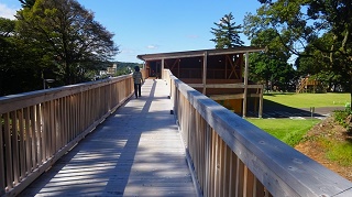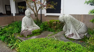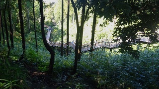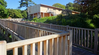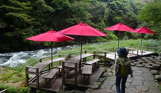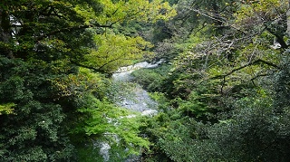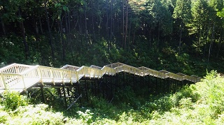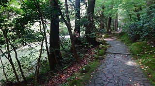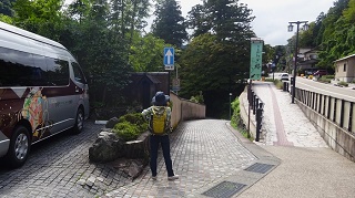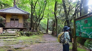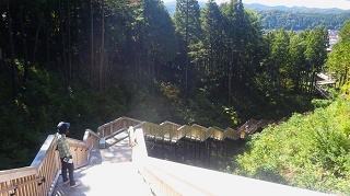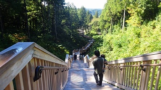 2025年10月15日(水)1回 あいうえおの杜 山代温泉に居た明覚上人が、1.093年に日本最古の「五十音図」を造ったらしい。それに因んで「あいうえおの杜」と云う、変わった杜(もり)が出来た。ネットで見掛けて面白そうなので、S女史と山中温泉の「鶴仙峡」を歩く前に寄ってみた。 山代温泉の総湯の近くに、大きな駐車場があった。初めてなので何も判らない。すぐ横に新しい回廊が出来ていた。荷物無しで出発。10時。 案内板を見ても何も判らない。とりあえず最高地点の「さざえ堂」まで登ろう。 直接登る階段もあるが、この上の高台の「あいうえお学舎」まで、回廊が続いているので登る。 回廊を登る。「あいうえお学舎」まで、車椅子で登るための回廊の様だ。 学舎が見えてきた。一階が「もりのテラス」で、二階が「あいうえおギャラリー」になっていた。学舎でパンフレットを貰い、トイレを借りる。 学舎の中は周らなくて、目の前の階段で「五輪塔」の方へ登る。 「四国八十八ケ所・加賀霊場」とある。石仏の並ぶ道らしい。 「石造五輪塔」。明治の頃に建てられた「明覚上人」の供養塔らしい。 四国八十八遍路の石仏が並ぶ道。西国三十三所の石仏霊場はあちこちにあるが、四国八十八霊場の石仏霊場は初めて見た。 一体づつ石の社に入っている。車遍路だが四国八十八所は全部周った。お寺の名前があり懐かしい。 回廊の上の高台に出た。ここまで階段の回廊で登れる。昔のホテルの入口が残る。 ここから「さざえ堂」まで舗装道路。 回廊が見える。帰りに降りよう。 さざえ堂が見えてきた。 以前からあったようだ。栄螺のようにぐるぐると周りながら登る「展望台」らしい。手摺に繋がりながら登る。標高は83m。 富士写ヶ岳。水無山。 鞍掛山。 白山は雲の中。 最上階。 最上階。狭い。 下山開始。 回廊を降りる。 手摺が付いていて老人でも大丈夫。 降りる。 この辺りまで車椅子でも大丈夫。 回廊は「あいうえお学舎」の2階に繋がっていた。無料の休憩所や、子供の遊び場もある。近くにコテージも造ってある。 また回廊で駐車場まで降りた。変わった杜(もり)である。また遊びに来よう。車に乗り、今日の目的地の山中温泉の「鶴仙峡」に向かう。11.10分。 ■次回登山は、下の項に続く■ 2025年10月15日(水)2回 鶴仙峡 山中温泉の、ゆげ街道を通れ抜けると、吉祥やまなか亭の前に、こおろぎ橋無料駐車場がある。車を置く。 吉祥亭の前の一方通行の道を、下の方へ降りる様に歩き出す。11.35分。 細い道だが車も通る。 岩不動の前を通る。岩に不動明王。 こおろぎ橋を渡る。 橋の上から「鶴仙峡」 ここから川へ降りるのかと思ったら、この先20mの立札あり。 ここから鶴仙峡へ降りる。黒谷橋へ1.200m・あやとり橋へ700m。 川のふちの歩道。 大聖寺川。 川のふちは崖。苔。 手入れしてある遊歩道。 采石厳。中国の景色に似ているらしい。 崖にへばり着いてあずま屋があった。12.10分。空いていたのでここで、川を眺めて昼食。 前の遊歩道を時々人が通る。外人もいる。 ゆっくり休んで出発。対岸に時々旅館。 向こうにあやとり橋が見えてきた。 一ヶ所だけ、川床が営業中。 飲み物・スイーツは席料込。注文しないときは席料のみ。 座らず通過。不動滝が落ちていた。 あやとり橋の下を通り抜ける。 道明地蔵と慈母観音がある。 遊歩道。 川が狭くなる。 小橋が架けてある。小才橋。向こうへ登れる様だ。 岩がせり出している下を通る。 「芭蕉堂」に着いた。明治43年(1910)に、芭蕉を慕う全国俳人により芭蕉堂が建てられ、芭蕉像が安置された。03.20分。 広場にトイレもある。ここを今日の目的地にしている。戻り始める。川岸の道を歩いたら、曽良の句の柱があった。「行きゆきて たふれ伏すとも 萩の原」。 曽良は腹を壊して、山中温泉で芭蕉と別れ、この句を残して、一日先に大聖寺の全昌寺に旅立った。 先月全昌寺を訪れていて、載せている。 戻る 戻る。 あやとり橋の近くで「桜広場」の方へ登る。広場にあずま屋がある。その先にあやとり橋。 あやとり橋。 橋は高い所を通っている。 ずーっと下に、先程通ったかわどこが見える。 橋を渡るとすぐ温泉街になる。「芭蕉の館」に寄ったが、水曜日で休館日だった。残念。芭蕉と曽良の石像。曽良は身体を壊し先に帰る事になった。別れを告げている。 奥の細道の本文がある。「今日よりは 書付消さん 笠の露 芭蕉」。 笠の裏に同行二人と書いた名前を消さねばならない、これからは一人旅となるな、芭蕉。この後が9/23日に歩いた全昌寺に続く。 ゆげ街道を戻る。 向こうに駐車場が見えてきた。 14.30分。駐車場に到着。 「鶴仙峡」は歩いた覚えがあるが、いつの事か記録が無い。初めて歩くような感じで、「あいうえおの杜」と共に、楽しい散策だった。 ■次回登山は、10/21「三方岩岳」へ■ |