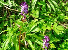 2025年04月19(土)9回 「花房山」三角点を確認、車で錦城山へ 加賀ゆめのゆで金沢のA女史と待ち合わせ。国道8号線の新幹線のガード下を通った、大聖寺の「細坪」交差点を入り、新幹線のガード下付近の道の広い所に車を置く。 新幹線がトンネルに入る地点が見える。あそこのトンネルの上を歩く。 細坪交差点から50m程の地点の、「熊坂線№41番」の鉄塔巡視路標識を登り出す。 少し登ると道は安定。 ヤマルリソウ スミレ アオキの花 「熊坂線№41番鉄塔」を通る。40番鉄塔の方へ進む。 途中で鉄塔巡視路から外れてトンネルの方へ。 新幹線トンネルの上に着く。遠くに観音像。良く見ると車道に置いた自分の車が見えた。 しばらく待っていたら新幹線が走ってきた。 今度は三角点を目指す。道は無いが一番高い地点を目指す。 一番高い所に「4等三角点・点名は花房・標高は85m」。今はここを「花房山」としている。 14年前に探したが見付からず、13年前にたどり着いて提げた「点名札」。今でも残っているのは奇跡だな。11.25分。下山開始。先の方へ進んで降りる。道は無し。適当に藪の少ない所を降りる。上手い具合に民家の屋根が見えてきた。 ミヤマシキミ チゴユリ 今年初見 民家の間に出た。アケビ。 車道を歩く。ドウダンツツジ モミジイチゴ ムラサキケマン 車に乗り、今日の昼食場所の大聖寺町「錦城山」へ移動。金沢の丁女史も合同の予定で電話が掛ってきた。お待ちかね。 ■車で「錦城山」まで移動する。■ 2025年01月19日(日)8回 加賀インター-「大蛇山」往復 今年は巳年。巳年に因んで蛇の山に登る人が多い。近くでは「蛇尾山」が多い。しかし老人には雪が多くて無理だな。S女史より「大蛇山」のリクエストがあった。女性に年を聞くのはヤボだが、彼女は巳年生まれらしいぞ。大蛇山には二人で登った事がある。今回は3回目。 加賀インターを越えて橘町に至る車道の途中から、高速道路のガード下を通り抜け、空き地に車を置く。 リュックを持たずに出発。200mほど歩くと溜池に登る階段がある。石段の階段を登る。 溜池がある。ここから先は道無し。右に溜池を周って登った事もあるが、今日はすぐ目の前の杉林へ。 杉林を通り抜けると斜面になる。 ルートはS女史任せ。何処から登るかな。 道は無いがピークが尖っているので、上へ上へ。雪がある所は彼女の足跡をたどり、足跡の無い所は適当に。置いて行かないで―。 50分も掛かって頂上に到着。林の中の丸い平らな空き地。真ん中に三角点。展望無し。このピークは「大蛇山」と呼ばれている。 「2等三角点・点名は右・標高は104m」。大きな保護石に囲まれている。山札は昨夜の真夜中に作った、急造の手作り。山に登っても山札が無いと登山証明にならないと、彼女に頼まれていた。 2等三角点は珍しい。国土地理院地図の2万5千分の一地図「大聖寺」には、この一箇所のみである。 直ぐ下山開始。登って来た方の景色。 昔の踏み跡らしきものも残る。 この杉林を抜けると溜池だ。 階段を折れると向こうに置いた車が見える。 国土地理院のホームページの三角点情報の「点の記」に、三角点のある地点が俗称「大蛇山」となっている。2等三角点も珍しい。地理院地図「大聖寺」の中には、この一ヶ所だけである。 車に乗り次の「治郎平山」へ登りに行く。 ■次回登山は、この後車で移動「治郎平山」へ■ 2024年03月24日(日)7回 加賀市「花房山」と「大蛇山」 すぐ横に鉄塔巡視路がある。前回もここから入った。 「熊坂線№41」の標識。いきなり倒木の下の下を通る。 巡視路は整備されている。 歩きやすい道。 「熊坂線№41」に到着。 「鉄搭№40」の方へ進む。 「鉄搭№42」は八号線近くの鉄塔かな。地理院地図に鉄塔記入が無いのはなぜ?。 アオキ シキミ カンスゲ 新幹線のトンネルの上に出る前に、右に分岐があり鉄塔が見える。「熊坂線№41」に寄ってみる。巡視路はその先降って行く様だ。戻る。 戻って北陸新幹線トンネルの上に着く。新幹線が通ったが上手く撮れなかった。新幹線のいない写真。 鉄道マニアには、良い場所だろうな。 この先は巡視路が無いので、途端に荒れた道。道の無い所を高い所を目指す。一度降るような所もある。ヤマップ頼りで三角点に到達。「4等三角点・点名は花房・85m」 近くの木に、12年前に提げた「点名札・花房(けぶそ)」がまだ残っていた。奇跡だな。 ここは「花房山」としても良いな。12年前はここから藪漕ぎで、細坪町の神社マーク目指して藪漕ぎで下山した。 今回も藪漕ぎで下山、藪の無い所を選んで下山開始。所々に道らしきものがある。 クロモジ ヤマザクラ 道は無いが、途中の作業道の跡みたいな日当たりの良い場所で昼食。下山開始。適当に藪を避けて降りて行ったら、民家の屋根が見えてきた。 上手い具合に民家の間から舗装道路に出られた。神社のまだ手前だった。 あとは舗装道路を歩い戻るだけ。坪野町の中は歩道が付いている。 イヌフグリ チンチョウゲ。 リュウキンカ 新幹線