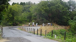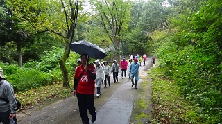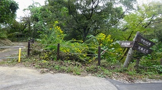 2025年10月11日(土)5回 「立林山」 津幡森林公園のメインルートの、周回林道が通れるようなった様だ。S女史と歩きに来た。 インフォメーションセンター前の広場に車を置く。10.10分。土曜日で賑わっている。トイレを借りる。園内の案内地図を頂く。 建物の左側から林道に入る。 建物の裏を通り「中央林道」を歩く。白山の方面、白山は見えず。 オトコエシ。「МISIAの森」への入口。閉鎖中。 「サイクリングコース」への入口。閉鎖中。 一年前はこの林道は、凄い壊れようで怖くて逃げ帰った。林道はきれいに修復されていた。 「やまぶきの道」も閉鎖中。幹線林道に囲まれた遊歩道は、全部閉鎖中になっていた。 この中央林道は舗装してあり、一般車は通行禁止。静かで安心して歩ける。右側の高い地点に「立林山」のランドマークがあるが、藪の中。知らぬ間に通り過ぎた。 雰囲気の良い「中央林道」 「白山連峰」の見える場所。今日は見えず。10.40分。 何かのグループが追い越して行った。 ガマズミ セイタカアワダチソウ こんにちわ。探索会がある様だ。 「森林鉄道展示場」があった。 展示場の前の休憩所。 突き当りで「津幡林道」に出た。右側に「屋内木育施設」。新しい施設らしい。寄らず。 「津幡林道」も舗装道路。車が通る。歩道を歩く。 少し紅葉している。 子供広場は入れそう。 バーベキュー場は営業中。 「野鳥の森」への分岐。外側だが入れるのかな? 歩道は壊れている所もあるが、通行出来る。歩いている人はいない。 分岐の「見晴台」が見えてきた。初めて見た。近くにトイレもある。11.15分。 ここが森林公園の最高地点。標高は96m。立林山より15m高い。 立山連峰の方面。写真がある。見えず。 白山の方面。写真がある。見えず。 見晴台の下のベンチで昼食。今日は杖の一本をコウモリ傘にした。パラパラと降ったが、傘を開く事なし。 下山開始。「中央林道」→「津幡林道」と歩き、ここから「大平林道」に入る。12.10分。 「大平林道」は車の通る林道。白山の方面。 歩道を歩く。 オオヤマボクチ ハギ アキギリ 「クルミの森」を通過。 「森林動物園」への道も閉鎖中。 「大平林道」の歩道を歩く。 あまり車は通らない。 左の谷の向こうに「キャンプ場」が見える。あそこまで尾根伝いに林道が続く。 熊が出た。「こどもの広場」の案内板の上に小熊が2匹いた。本物なら怖いね。 キャンプ場。ボート乗り場への道。閉鎖中。誰も居ない。 もうそろそろ一周かな。 車で登った道に出た。「いしかわ動物愛護センター」に出た。新しい施設。 その先に車を置いた「インフォメーションセンター」の駐車場。13.30分。これで森林公園の林道を一周してきた。林道に囲まれた部分の遊歩道は、地震や水害で、完全に閉鎖中だった。早く復旧すると嬉しいね。 ■次回登山は、10/15「あいうえおの杜」へ■ 2024年10月17日(木)4回 「立林山」 昨年7月に大水害があり、津幡町の森林公園は閉鎖していたが、ヤマップで歩いている記録があったので、様子を見に行った。 S女史と加賀産業道路から山側環状線、8号線で、津幡町の石川森林公園のインフォメーションセンターに到着。9.50分。トイレを借り中に入ったら「園内散策禁止」の張り紙。園内施設は少しずつ開いてきているが散策園路には入らないで下さい、との事。 散策禁止だが、内緒でちょっと様子を見に入る。この先に「立林山」があるから、ランドマークまで行ってみよう。ずっと車道だ。 車道の横が崩れて道路が狭くなっている。 川も無いのになぜ崩れたのだ? ここも崩れている。確かに怖い。 この車道の右側の藪の中に三角点があり「立林山」の頂上になっている。距離が100m以内なのでこの車道を歩くだけで、ヤマップでは登頂と認定される。今日も藪が嫌で三角点まで登らずここで帰ろう。 前から来た散策者に様子を聞いたら、何とか歩けますよと云われたが、ここまでの道の壊れ具合を見て怖いので、老人は無理をしなくて帰る事にした。同じ道を戻りながら、近くの山を歩こうと相談して、朝に車で通ってきた「大乗寺丘陵公園」を歩く事にした。 ■次回登山は、「大乗寺丘陵公園」に移動■ 2022年08月07日(日)3回 「立林山」 ![]() この年になるとちょっと歩かないと足が弱ってしまう。暑い事を承知で津幡町の森林公園を徘徊に来た。8号線の「緑が丘」という信号から、森林公園の「インフォメーションセンターの駐車場に車を置く。サルスベリの赤と白がある。ここは初めて。建物の中に自動販売機、レストランがある。公園里案内図を貰って出発。11.45分。 ![]() 建物から裏の道路に出る道が判らず、外側から回り込んだ。建物の中庭を横切れば良かったんだ。ここに1番の標識。舗装された道を行く。車は通行禁止で静かである。 ![]() 此の「中央林道」を歩き、3番の分岐通過。白山連峰の展望地。今日は見えず。この先「立林山」の下を通る。地理院地図に山名が載るが道は無い。ヤマップではこの道を歩くだけで登頂と認定さ