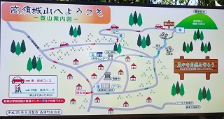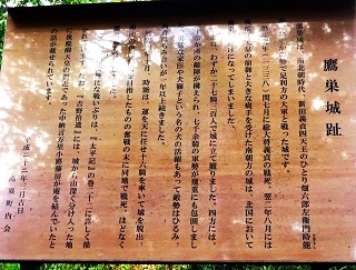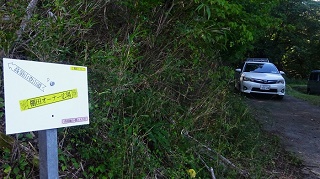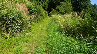 ![]() パイプ組み立ての、工事現場みたいな展望台がある。右に石油備蓄タンクがみえる。 ![]() さっきまで登って居た「高須山」と思われるが。??。 ![]() 上から三角点を写す。非常に高いぞ。風で少し揺れている。へっぴり腰てナントカ降り立つ。 ![]() 三角点で記念撮影をして下山開始。 ![]() 降りは登って来た反対側の斜面に登ってきている林道を降りる。林道歩きでとても楽だが、歩いて来た軌跡を見ると、反対柄の斜面を降り、ぐるりと反対側から一周するように降りる。距離は3倍はある様だ、 ![]() ようやく国道に置いた車が見えてきた。 ところで国道416号線について調べていたら、なんと私の住んでいる石川県小松市から、勝山市に通ずる国道が、少し前に繋がり、それがここを通ってこの先の海まで続いているのだった。 ■次回登山は、6/17加賀「宇谷山」へ■ 2019年10月05日(土)2回 「高須山」を単独徘徊。 4日前に下市山を登った。その時に下市山と高須山のページを合併した。そんな訳で「高須山」も歩いて来ることにした。今日も一人、老人の里山徘徊である。8年前に来た時の登山案内図が新しくなっていた。高須城小学校の、前回と同じ場所に掛かっている。小学校の校庭に停めて、ここから歩き出すコースかが書き込んである。 ![]() ![]() 白山神社の隣の「集落センター」の駐車場まで乗り入れる。前回と同じ場所だ。白山神社に参拝。 ![]() 神社の横に標識がある。まっすぐ進めば良かったのに、集落に降りて、また戻る。 ![]() 一度車道に合流。 ![]() 車道を少し進むと「高須山」が目の前に現れる。 ![]() 林道は左へ登って行くが、登山路はここから直進し、獣除けのゲートを通る。 ![]() 初めは、川沿いである。 ![]() やがて杉の林になる。 ![]() やがて車道の終点に合流。案内図によれば、ここまで車が入ることが出来る様だ。最も道は悪そうだ。 ![]() ここからは、山肌を捲いて、緩やかに登って行く。 途中で海が見える所がある。鷹巣港らしい。 ![]() ![]() 頂上到着。一面の草原、一番高い所に「鷹巣城址」の石碑がある。 ![]() 石碑の下に石の祠がある。誰も居ない。 登って来た方面。高須町だろうな。 ![]() 石油備蓄基地が見える。その先海岸線が飛び出している所が、東尋坊だろう。 ![]() ![]() 同じ道を戻る。 ![]() ![]() 林道終点まで降り、帰りは林道をそのまま歩いて戻る。 ![]() 林道の途中に、獣除けの門がある。車の通行を禁止するものではありません、と書いてある。 ![]() 林道をお終いまで歩いても、白山神社まで出るが、途中で戻るように分岐を降りて、登って来た登山路に戻って、駐車場に戻り着いた。今日は、誰一人登って居ない高須山でした。 ツリガネニンジン カメバヒキオコシ ヤマシロギク ![]() ![]() ![]() ラショウモンカズラ ミズヒキソウ 花の名前は保証しません。怪しいぞ。 ![]() ![]() ■次回登山は、10/9「籾糠山」■ 2011年09月06日(火)1回 「高須山」初登山-「国見岳」初登山 病み上がりで、低い山を探していたら、S女史が「高須山」を見付けてきた。おまけに展望が良いとの事で、ここを歩くことにして仲間に声を掛けたら、久しぶりに4人集まった。これだけそろったのは2か月半ぶりである。 9時に加賀ゆめのゆを出発、高速を丸岡インターで降りて。海の方へ向いてひた走り。佐野町からフォーレスト福井ゴルフ場の周囲を回ったら、高須町にたどり着いた。村の中に入ると「高須城小学校」があり、金網フェンスにこの案内板を見付けた。1995年制作高須城小学校と書いてある。16年前のものである。学校も廃校みたいな感じだ。村の中は狭くて車が置けない。電動三輪のおばあさんに聞いて、「高須町集落センター」の駐車場に入れる。センターは、そのまま学校の横の坂を上り、左に曲がると「白山神社」がある。その境内に「高須町集落センター」がある。折から葬式があるようで用意をしている。 ![]() ここでまた地元の人に登山路を聞く。神社の横を入って行くと、また田んぼに出る。舗装路は行ったらだめで、山道に入る事。イノシシ除けの金網は、電流が流れているので触らないこと。 ![]() 10.30分歩き出す。白山神社にお詣りして、神社の右横の山道を入り、200mほど歩いたら舗装道に出た。田んぼの中を右から登って来て、直進している。前方に丸い高須山が見える。そのまま舗装路を直進して登って行けばよかったのだが・・・・。 ![]() 「高須山頂」の赤い矢印があるのだが、方向がおかしい?。しかもさっき聞いた話の思い込みが激しい。舗装路をいつまでも行ってはいけないとか、イノシシ除けの金網とか。そこで矢印の通り、金網を跨いで棚田のあぜ道を歩き出す。 ![]() 稲刈りの人に笑われて、舗装路に戻る。舗装路を左に曲がりながら200mほど歩いたら、林道の舗装路は左に曲がって行く。直進する山道が登山路だった。この分岐に子どもが造った矢印案内板が有った。「ちょう上へ たかす町へ」と仮名で書いてある。 ![]() 小さな仏様が置いてある。信仰の山でもあるよ