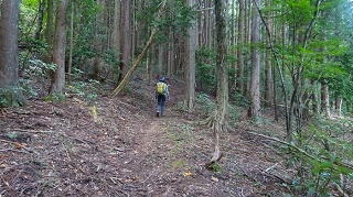 ![]() 神社と反射板の間に三角点がある。神社の前で昼食。木が茂っていて展望は無い。 ![]() 下山開始。途中で木の間から海の方がちらりと見えた。どこだか判らない。 ![]() ![]() ![]() ![]() 林道に降りて来て右に周り、ガードレールの下を歩いて登山路の続きを杉林の中に降りる。ガード下には虎ロープがあるが半分藪になっている。老人はもたもたとしていて相棒とだいぶ置いてゆかれていた。その内に急斜面を降りている時に、道から外れていることに気が付いた。タブレットのヤマップ地図の軌跡を見ると、方向的には間違えていないが、少し近道をしているようだ。平らな所でどこでも歩ける。そのまま進めは登山路に突き当たる様だ。 相棒から携帯に電話が掛かって来た。クマ除け鈴の音が聞こえなくなって、登った時に休んだ場所で待っていたがいつまで待っても現れない。老人は倒れてノビているのかも知れないと、少し戻ってみたりして、心配になり電話をしたらしい。すまんすまん、道から外れた事は判っているが、自分が先へ進んでいるか遅れているかがわからない。もうすぐ登山路に復帰できるからと、まだ電話してもらう。どうやら私の方が先へ進んでしまったらしい。待っていたらすぐ上から現れた。無事再会、平謝り老人徘徊です。 ![]() ようやく林道からの登り口に戻ってきた。しかしここも林道から戻ってきたので、二人して少し道を外している。 ![]() 15.00時に車まで戻ってきた。 今日はこれから「国見岳」の一等三角点を確認して戻る予定。 ●続きは「国見岳」の下の稿に続く● 2020年06月27日(土)4回 「金毘羅山」と続いて「国見岳」 「国見岳」は9年前に、高須山の帰りに車で上り、一等三角点を確認した事がある。金毘羅山から降りて越前海岸に戻る。 ![]() 戻るように走ると「弁慶の洗濯岩」で一休み。トイレがある。義経弁慶一行が東北平泉を目指すとき、このルートを通ったらしい。その先で福井に抜ける県道を走る。 ![]() 国見岳森林公園へ登る「二枚田幹線林道」の入り口があった。 ![]() 国見岳森林公園のキャンプ場の駐車場に車を留める。 ![]() 記憶を頼りに鉄塔のある高い地点を目指す。鉄塔を越えた突き当りに三角点がある。 ![]()