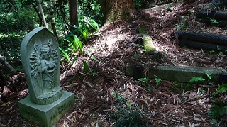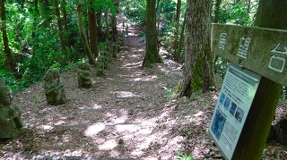 2025年08月30日(土)5回 八幡神社より「長泉寺山」周回 5月に鯖江市小黒町の八幡神社より「三十三間堂」と「祈りの道」で、一人で長泉寺山を歩いた。今日は金沢の二人とS女史を、同じコースで案内する事になった。 西山公園道の駅で金沢組と待ち合わせ。有料駐車場に車を入れる。すぐ前が道の駅である。道の駅の屋上に公園に入るエレベーターが見える。足が遅いので先に車道を歩き出す。一本道なので八幡神社の登り口で待つよ。10時10分。 車道の石仏のお堂。サルスベリ。 また道端の石仏堂。信仰の厚い土地柄だな。 民家のムラサキシキブと赤い花? 民家のノウゼンカズラ。 八幡神社の登り口に到着。まだ追いついてこない。どうしたのか? 説明不足だったかな。 民家の蛙の前で待っていたら携帯が鳴った。道を間違え山に登ったら、レッサーパンダの動物園に着いたという。 動物園まで上がったら、頂上は近いな。皆様はそのまま頂上に登り、頂上で会いましょう。私はこちらから登ります。神社の鳥居をくぐる。10時40分。 二つ目の赤い鳥居をくぐると八幡神社。今日もよろしく。 ここから尾根の上のピーク迄に、33体の観音石像が並ぶ登山道。 神社と案内板。「史跡・三十三間堂」と呼ぶ。 急坂になる。観音石仏は新しいものも、古いのもある。建て替えして居る様だ。 第1番・和歌山県・青岸渡寺 第4番・大坂・槇尾寺 階段の道 階段の道。雰囲気が素敵。 第7番・奈良県・岡寺 一度尾根を横断する。 尾根を横切りピークには登る。三十三間堂参道と書いてある。 第32番・滋賀県・観音正寺 第33番・岐阜県・谷汲寺 ピークの上に到着。これで33観音を完全参拝。御利益がありそうな感じ。よろしくお願いいたします。11時10分。 尾根を降って頂上の方へ縦走開始。 1988(昭和63)年に、市民の心の潤いと安らぎの場を作ろうと、市民グループが「祈りの道設定の会」を作った。千体を目標に設置希望者を募集。石の値段は3万円から4万円で他に設置料。自分で彫っても人に頼んでも良い。自分の記念の為に彫る人が増えて、県外の人も多かった。今は世話する人逹が高齢になり。鯖江市に移管されているらしい。実に色々の像があり見ていて楽しい。今は480体ほどあるらしい。 後ろから登山者が来た。エエーッ?。なんと頂上で会うはずの仲間が、後ろから追いかけてきた。私の事が心配で、動物園からまた下りて、後を追いかけてきたと云う。すまんすまん。獣除けの柵を開けて、車道を登るとすぐ頂上である。 頂上手前の道路の真ん中に三角点マーク。この中に「3等三角点・点名は御館・標高は111m」ここが長泉寺山の頂上。 三角点の先に展望台がある。暑くて誰も居ない。 文殊山。 日野山。 スピーカ塔の日陰で昼食。11時40分。暑いが少し風が通る。 祈りの道を下山開始。 ドラえもんを見付けたぞ。 大きなものもある。 祈りの道を通り抜けて、下に降りる。 橋を渡り「嚮陽庭園」の部分に渡る。 鯖江藩7代藩主が、ここに領民の為に憩いの場として、庭園を造った。 それが西山公園の始まりである。シカシカ。いろんな庭。道も色々ある 池に出た。立派なあずま屋がある。 あずま屋で一休み。鯉が集まって来た。 餌の販売機があり与える。取り合い。凄い。 段々と降りて、道を渡って西山公園に戻る。 ツツジの庭園。ゴールデンウイークの混雑を思い出す。 道の駅の屋上に渡る橋。エレベータで店内に降りる。買い物をして、金沢組とお別れ。今日も老人にお付き合い頂き、ありがとうございました。楽しい一日でした。14時。 ■次回登山は、9/3「二堂山」へ■ 2025年05月05日(月)4回 八幡神社より「長泉寺山」周回 ゴールデンウイーク。昨日に引き続き「鯖江・西山公園」を徘徊。 今日は一人。西山公園に入ろうと思ったが何処も車のの渋滞行列。駐車場に入れずウロウロ走って 、だいぶ離れた地点で大きな量販店の、ガラガラの駐車場を見付けて、隅に停めてどうしょうかと地図を見て考えた。西山公園から「長泉寺山」を目指す予定だったが、ヤマップ地図に小黒町の八幡神社からの登り口があるのを見付けた。ここからだと西山公園登り口より近い。ここから長泉寺山に登り、西山公園に降りる事にした。 しばらく車を置かせてください。すみません、帰りに寄ります。長泉寺山に向かって歩き、山裾の車道を左に歩く。11時。 道筋に石仏。 登山標識は無い。通り過ぎて戻る。これが「八幡神社」らしいな。 二つ目の鳥居。左の方に道がある様だ。行ってみる。 「史跡三十三間堂」とかの標識。ここから頂上まで西国三十三ヶ所観音霊場の観音を模した石仏が並び、ここを登る事で「西国三十三ヶ所巡り」が出来るとの事。11.10分。 急坂である。石仏が並ぶ。これは第四番観音像。 第九番観音像。両側に並ぶ。 新しく造り直されたものも。古いものもある。 第九番観音像。中々の急坂。 まだまだ続く。 一度林道と合流。昭和23年頃まで村内の人々が、西国三十三ヶ所ご詠歌を唱えて登り、山頂で昼食を取る
